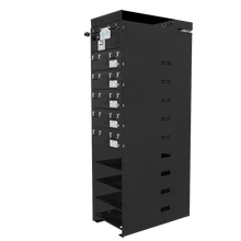 The LBSA Rhino IntelliFlex High Voltage Rack offers a robust housing solution designed to accommodate HV104-14WFRE modules and controllers. Built for scalability, it supports up to 9 or 11 modules (depending on configuration) with integrated cable management and click-connector technology. The rack features a concealed cable compartment ensuring longevity and reliability. Its steel construction facilitates easy integration into existing setups, making it suitable for various applications from residential to utility-scale.
