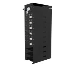 The LBSA Rhino IntelliFlex High Voltage Rack offers a robust housing solution designed to accommodate HV104-14WFRE modules and controllers. Built for scalability, it supports up to 9 or 11 modules (depending on configuration) with integrated cable management and click-connector technology. The rack features a concealed cable compartment ensuring longevity and reliability. Its steel construction facilitates easy integration into existing setups, making it suitable for various applications from residential to utility-scale.